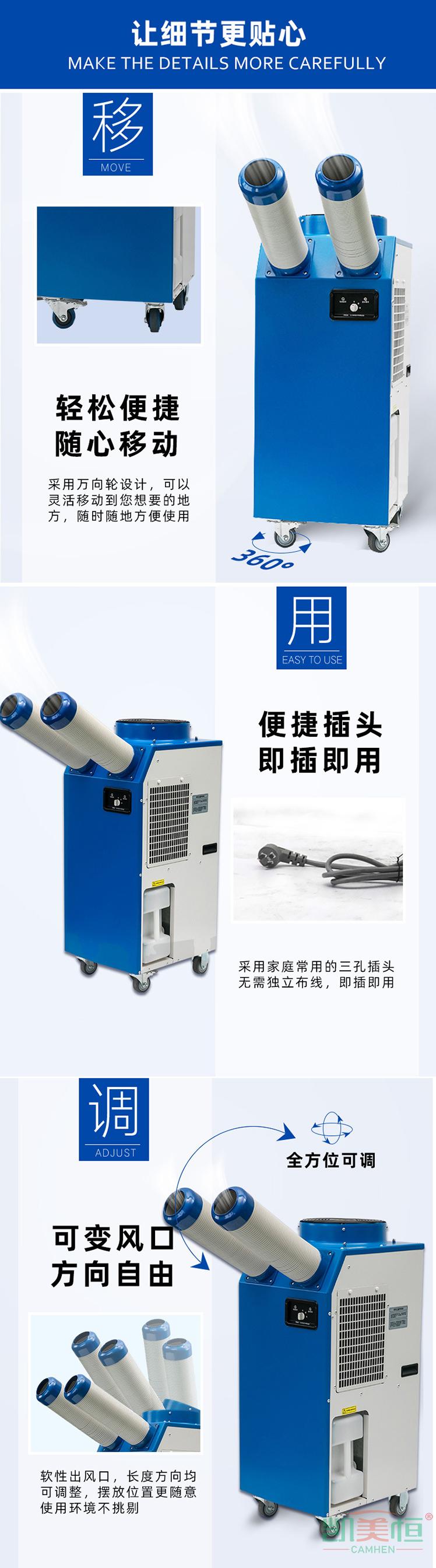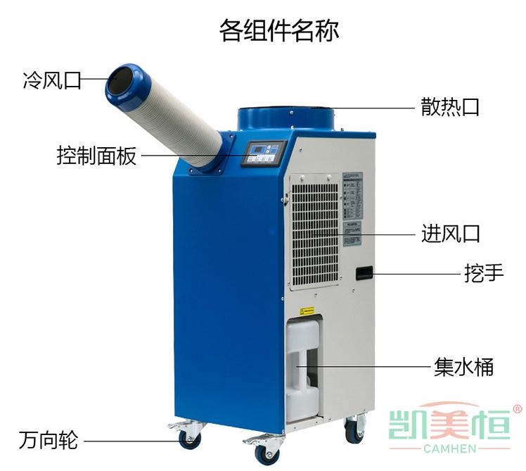 2、本產品為局部降溫空調設備,制冷、散熱在同一機器上,區(qū)別于傳統(tǒng)家 用分體式空調。